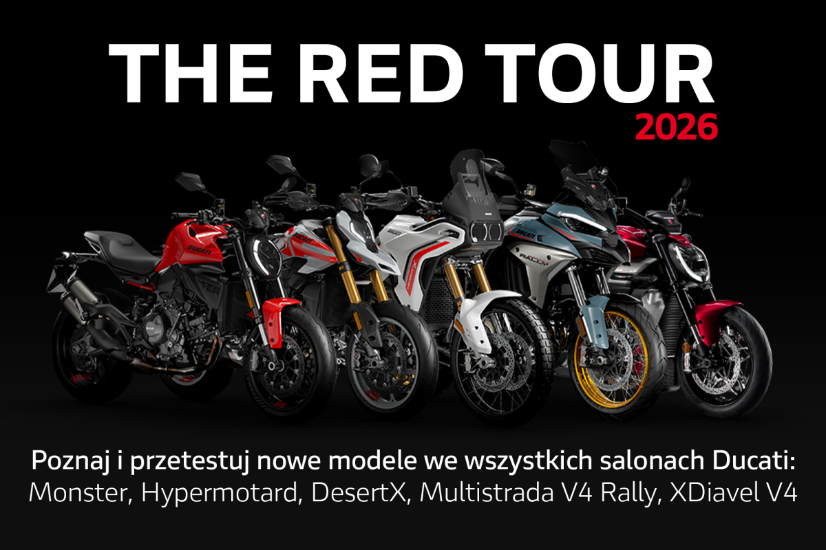 The Red Tour powraca z nową, ogólnopolską edycją! To idealny moment, by w autoryzowanych salonach Ducati sprawdzić najnowsze modele podczas jazd testowych, doświadczyć ich charakteru i poczuć emocje, jakich dostarczają na drodze.